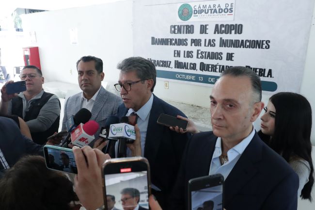 Monreal Ávila informó que se instalará en el Palacio Legislativo de San Lázaro un centro de acopio para recolectar víveres y artículos de primera necesidad, con el fin de canalizar ayuda directa a las comunidades lastimadas por las intensas lluvias en los estados de Veracruz, Puebla, Hidalgo, San Luis Potosí, Querétaro y Guerrero.