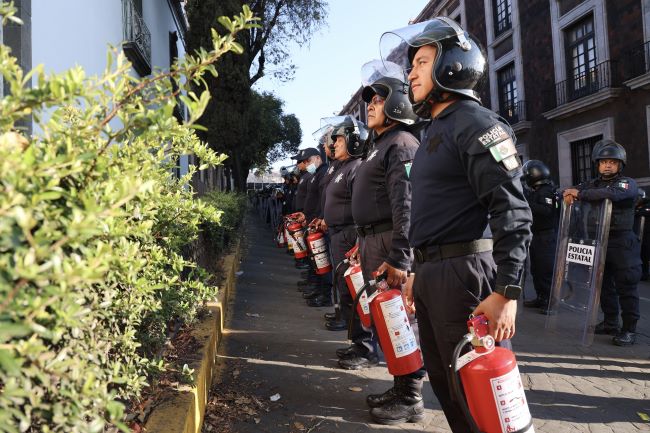 Se verificó que 2 mil 361 agentes no portaran armas, gases lacrimógenos u otros instrumentos que pudieran afectar la integridad de las personas manifestantes.