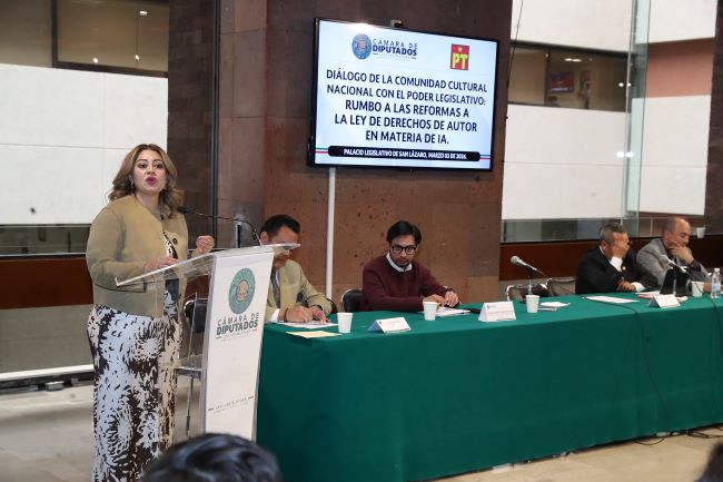 Diputadas y diputados del PT reiteraron su compromiso de escuchar y defender en comisiones y el Pleno todas las inquietudes que tienen creadores y representantes del sector cultural, respecto a las reformas a la Ley Federal del Derecho de Autor, en materia de Inteligencia Artificial (IA).