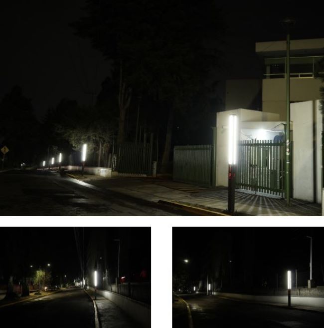 Se trata de luminarias tipo vela de 2.80 metros de altura, de acero galvanizado, resistentes, y aptas para la iluminación de senderos peatonales instaladas en toda la periferia del campus universitario.