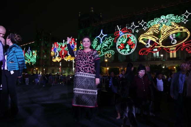 Al prender el alumbrado monumental referente a la temporada decembrina en la Plaza de la Constitución, la Jefa de Gobierno, Clara Brugada Molina, resaltó que con el inicio de las festividades de fin de año el gran Zócalo se llena de luz, alegría, convivencia y esperanza para las familias capitalinas.