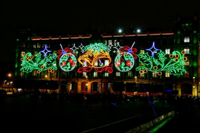 Al tomar la palabra, el titular de la SOBSE, Raúl Basulto Luviano, indicó que el alumbrado navideño colocado en Zócalo capitalino consta de cuatro conjuntos monumentales de luces, que representan diseños tradicionales de campanas, esferas, cascabeles, faroles, estrellas, velas, pinos, moños y flores de Nochebuena.