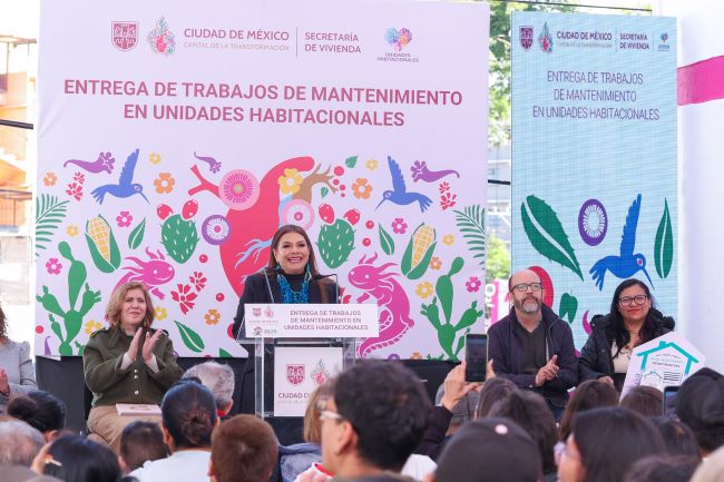 “En dos años, 2025 y 2026, tendremos mil 200 millones de pesos para mejorar las Unidades Habitacionales, para hacer mantenimiento mayor, para hacer mantenimiento menor, para pintar, para arreglarlas. Así que tenemos un presupuesto importante que no se había dado en los últimos años para las unidades habitacionales, que incluyen pintura, instalación de luminarias, mejoramiento de escaleras, balizamiento y también se pintan murales para embellecer el entorno”, resaltó la Jefa del Ejecutivo local.
