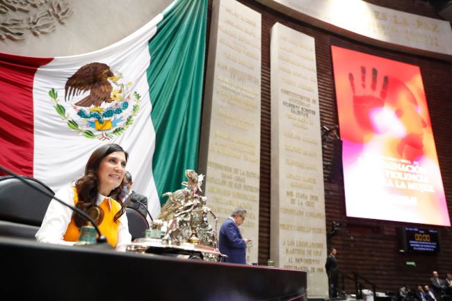 La presidenta de la Cámara de Diputados, Kenia López Rabadán expresó que hoy, 25 de noviembre, Día Internacional de la Eliminación de la Violencia contra las Mujeres, en esta Cámara “nos unimos al llamado mundial para reconocer una realidad dolorosa y para asumir, con firmeza nuestra responsabilidad institucional”.