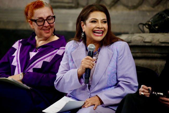 Entonces, a mí me emociona escuchar la historia y lo que son cada una de ustedes. Y cuando escuchamos a Sofía hablando de la situación de las mujeres y de las artistas, pues sabemos que hay una deuda, una gran deuda, sí. Una gran deuda de la sociedad y del Estado, con la cultura; con las mujeres artistas y en general con los trabajadores de la cultura, pero en especial con las mujeres artistas. Entonces, vamos trabajando ese tema.