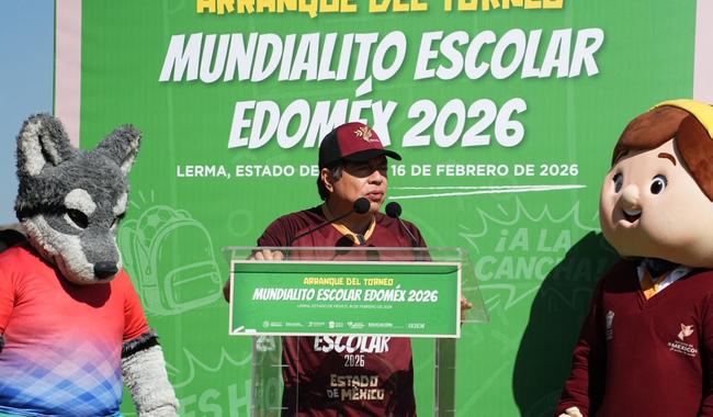 Con la presencia de equipos de bachillerato del Estado de México, reunidos en el Colegio Nacional de Educación Profesional Técnica (Conalep), plantel Lerma, Delgado Carrillo exhortó a las y los estudiantes de Educación Básica y Media Superior de todo el país a inscribir a su equipo en la página oficial del Mundialito Escolar 2026, al afirmar que no hay futbolista que no haya empezado en el patio de su escuela, en la calle, en su barrio o en su colonia.
