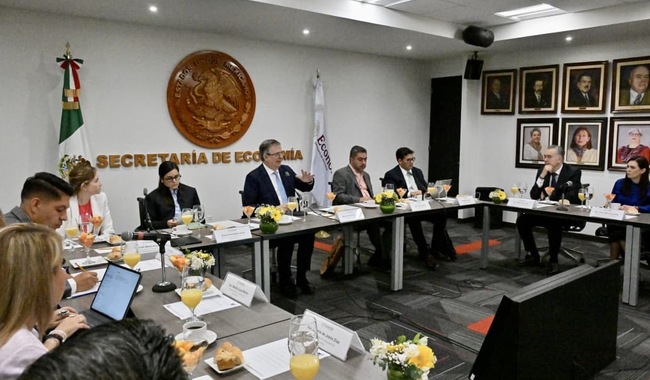 Acompañaron al secretario, Vidal Llerenas, subsecretario de Industria y Comercio; Ximena Escobedo, titular de la Unidad de Desarrollo Productivo; Deborah Alcocer, titular de la Unidad de Prácticas Comerciales; y Daniel Millán, director general de Comunicación Social.