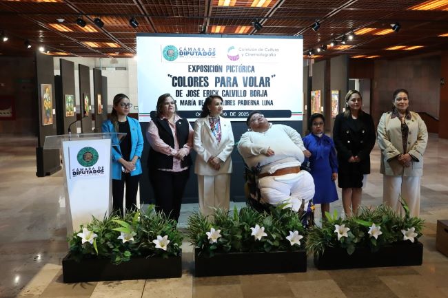 En la Cámara de Diputados se llevó a cabo la inauguración de la exposición pictórica “Colores para volar” del artista José Erick Calvillo Borja, organizada por la diputada Dolores Padierna Luna, vicecoordinadora del Grupo Parlamentario de Morena, a fin de fomentar la inclusión a través del arte.