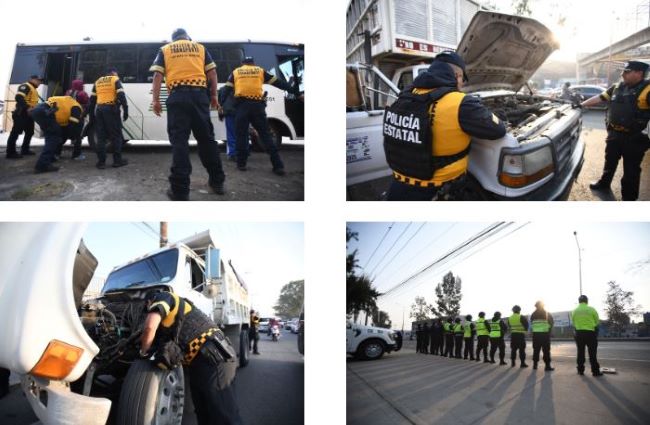 Desde las 05:00 horas, horarios donde los usuarios comienzan a trasladarse a su actividades diarias, sobre la carretera Lechería-Texcoco, vialidad de alta afluencia de carga y pasajeros, se realizan revisiones aleatorias.