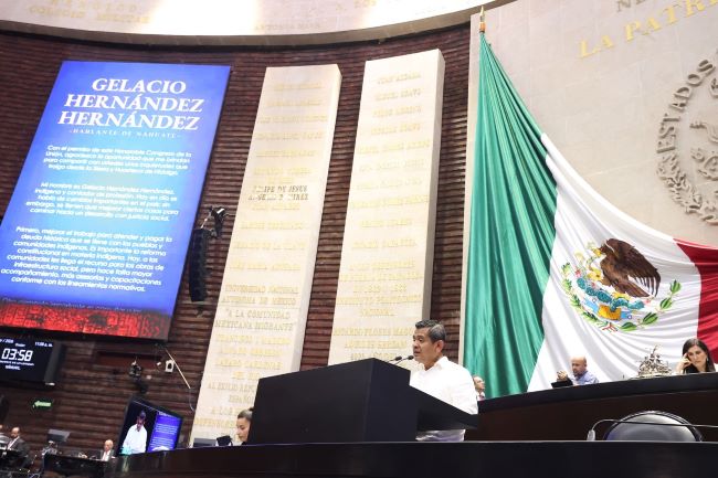 La diputada Kenia López Rabadán, presidenta de la Mesa Directiva, expuso que Gelacio Hernández Hernández, originario del Barrio Gómez Sada, Tlanchinol, Hidalgo, es licenciado en Administración Pública y cuenta con una vasta experiencia en el ámbito municipal.