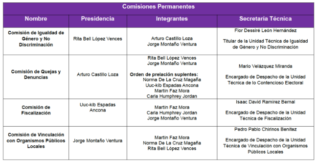 La integración provisional de las comisiones permanentes y temporales quedará conforme a la tabla siguiente: