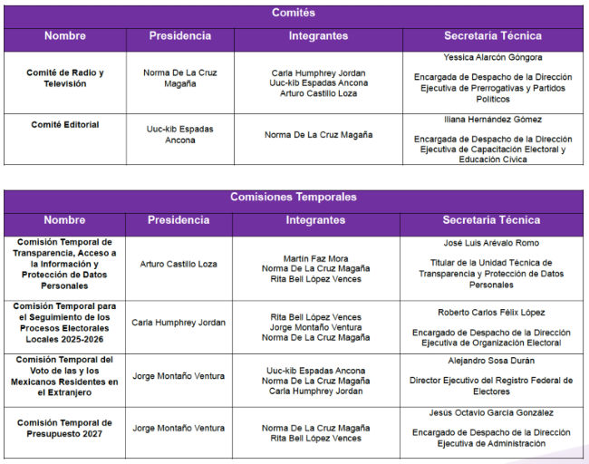 Es importante destacar que estos ajustes poseen una naturaleza estrictamente transitoria, pues la nueva conformación de las comisiones, comités y sus presidencias tendrá vigencia únicamente hasta que se concrete la incorporación de las personas que resulten electas por la Cámara de Diputados, momento en el cual se realizará una integración definitiva, acorde a la composición plena del Consejo General.