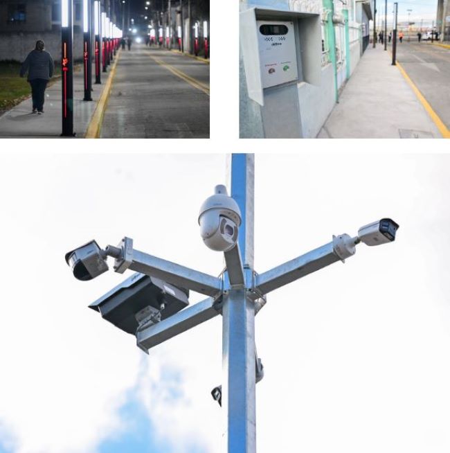 Informó que a lo largo de más de 900 metros se rehabilitaron banquetas y guarniciones; se instalaron cámaras de videovigilancia con botones de pánico conectados al C4 de Toluca, así como luminarias tipo vela con base de concreto.