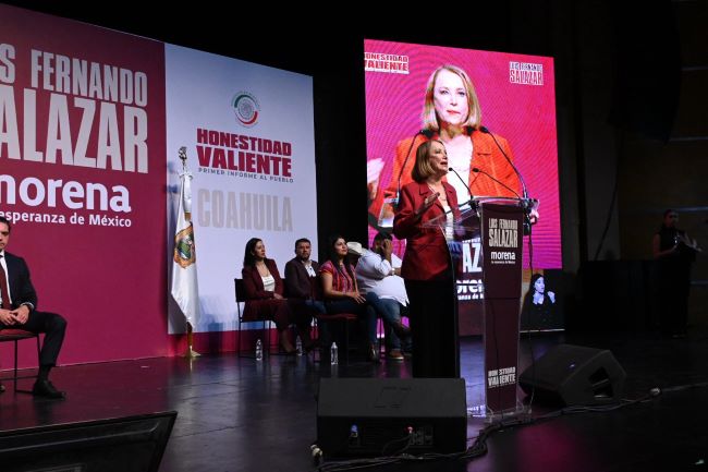 La senadora Laura Castillo Juárez asistió este viernes a la presentación de los informes de actividades de la senadora Lilia Margarita Valdez Martínez, en Durango, y del senador Luis Fernando Salazar Fernández, en Coahuila.