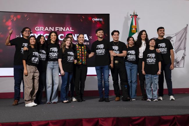 PRESIDENTA DE MÉXICO, CLAUDIA SHEINBAUM PARDO: —Vénganse aquí primero para que… “México Canta”. Hoy vamos a… Vengan todos—.