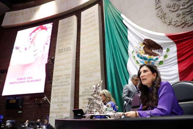 Mensaje de Kenia López Rabadán con motivo del 4 de marzo, Día Internacional de Concienciación sobre el Virus del Papiloma Humano, en Palacio Legislativo de San Lázaro