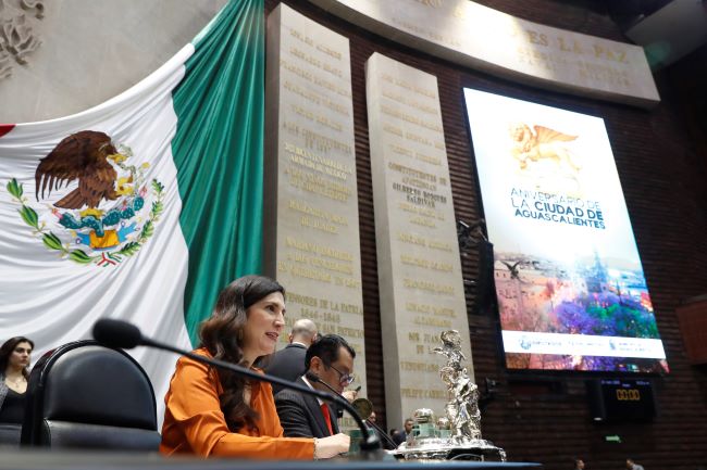 Mensaje de Kenia López Rabadán, Presidenta de la Cámara de Diputados, durante la sesión solemne en conmemoración del 450 aniversario de la fundación de la Ciudad de Aguascalientes, en el Palacio Legislativo de San Lázaro