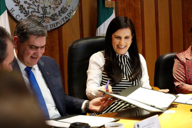 Mensaje de la diputada Kenia López Rabadán, presidenta de la Mesa Directiva de la Cámara de Diputados, durante la firma de convenio con el Tecnológico de Monterrey, en las oficinas de la Mesa Directiva, en Palacio Legislativo de San Lázaro