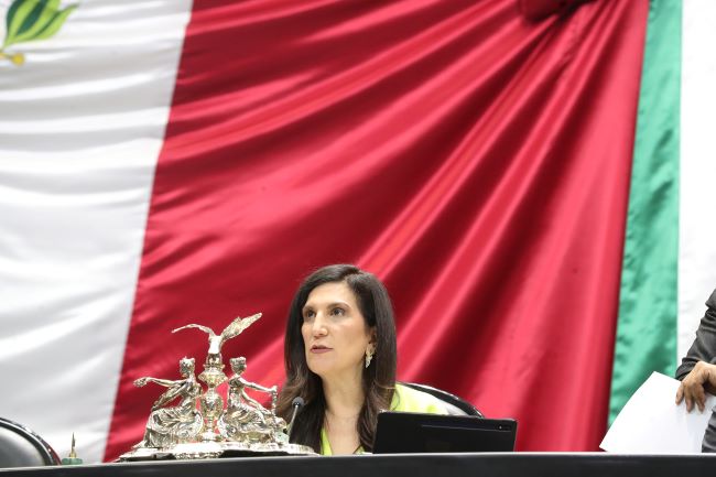 Mensaje de la diputada Kenia López Rabadán, presidenta de la Mesa Directiva de la Cámara de Diputados, durante la sesión del Pleno, en Palacio Legislativo de San Lázaro