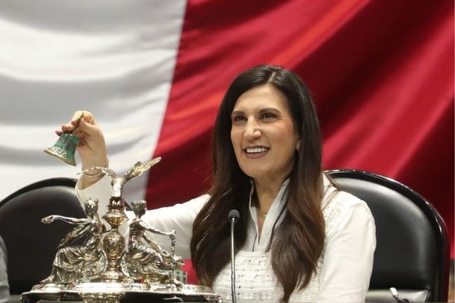 Mensaje de la diputada Kenia López Rabadán, presidenta de la Mesa Directiva de la Cámara de Diputados, durante la sesión matutina con motivo del aniversario de la instalación del “Gran Tintero”, en la explanada de Palacio Legislativo de San Lázaro