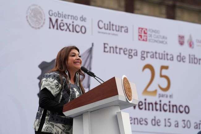 Desde el Zócalo Capitalino, Clara Brugada destacó que “25 para el 25” es una iniciativa profundamente significativa, al despertar el interés de miles de jóvenes por la lectura y los libros, al tiempo que garantiza el acceso a una colección de obras de autoras y autores latinoamericanos seleccionados especialmente para la juventud del continente.