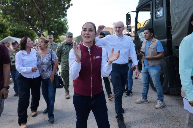 “En Poza Rica, Veracruz, supervisamos avances de limpieza y visitamos el centro de entrega de apoyos a familias afectadas por lluvias. No están solas, continúa la ayuda y atención a las necesidades”, informó a través de sus redes sociales.