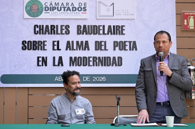 El Espacio Cultural San Lázaro, que dirige Elías Robles Andrade, la Junta de Coordinación Política, que preside el diputado Ricardo Monreal Ávila, la Mesa Directiva y las secretarías General y de Servicios Administrativos y Financieros de la Cámara de Diputados, organizaron el círculo de lectura “Charles Baudelaire. Sobre el alma del poeta en la modernidad”, con la participación de Javier Moro Hernández, autor de diversos libros.