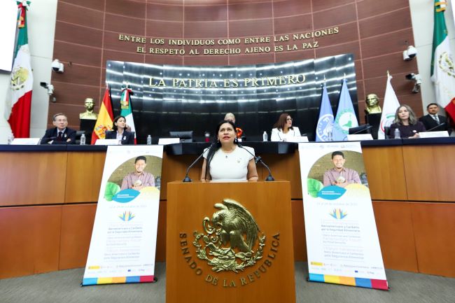 La senadora del Grupo Parlamentario de Morena y presidenta de la Comisión de Defensa Nacional destacó la importancia de que las políticas públicas, los presupuestos y la legislación en materia alimentaria sean prioritarias.