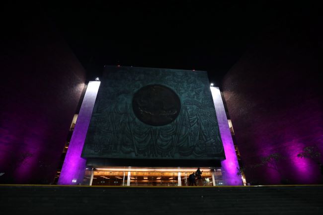 El frontispicio de la Cámara de Diputados fue iluminado de color púrpura, con motivo del Día Internacional de la Epilepsia, que se conmemora el segundo lunes de febrero.