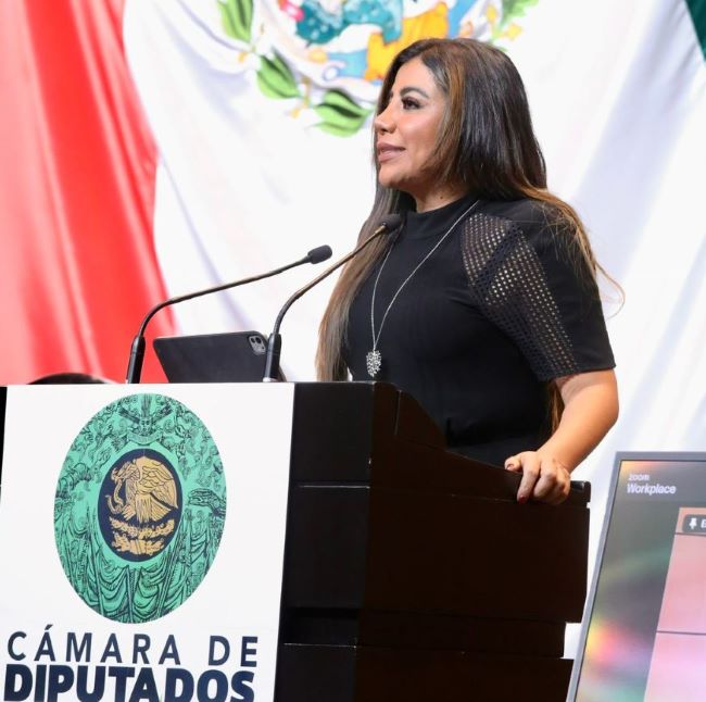 En el Salón Verde de la Cámara de Diputados, la legisladora federal veracruzana Lorena Piñón Rivera presentó el posicionamiento del Grupo Parlamentario del PRI ante la comparecencia de Emilia Esther Calleja Alor, directora general de la Comisión Federal de Electricidad (CFE), en el marco de la glosa del primer informe de gobierno de la presidenta Claudia Sheinbaum.