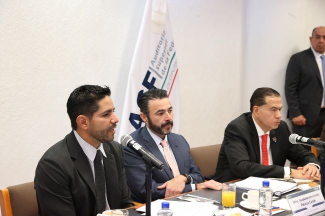 Integrantes de las Comisiones de Vigilancia y de Transparencia y Anticorrupción sostuvieron una reunión de trabajo con el nuevo titular de la Auditoría Superior de la Federación (ASF), Aureliano Hernández Palacios Cardel, a fin de conocer su plan de trabajo, objetivos, encontrar puntos de entendimiento y colaboración, así como escuchar propuestas de reformas a su marco legal.