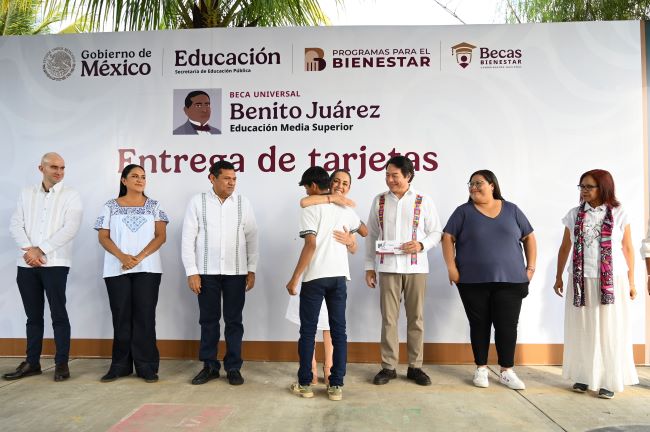 Por eso, se mantiene la Beca Benito Juárez, que nos dejó nuestro Presidente, su paisano, Andrés Manuel López Obrador, a más de 4 millones de jóvenes en todo el país, más de 100 mil aquí en Tabasco.