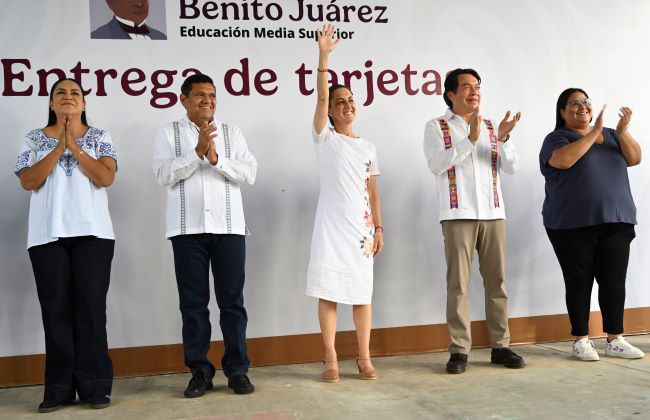 Y, gobernador, en este año, por disposición de la Presidenta, fíjense, habrá más de 140 mil becarios nuevos, niños y niñas de las primarias de Tabasco. Todas y todos van a recibir la Beca “Rita Cetina”. Por lo tanto, Tabasco va a rebasar los 500 mil becarios, niñas, niñas, jóvenes, adolescentes.