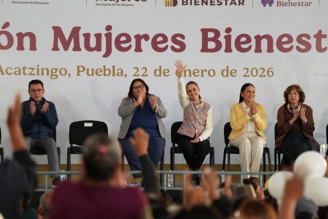 Desde Acatzingo, Puebla, la Presidenta Claudia Sheinbaum Pardo encabezó la entrega de tarjetas del programa Pensión Mujeres Bienestar, que ya se otorga a 3 millones de mexicanas, en reconocimiento al trabajo que hacen por sus familias y que simboliza el cumplimiento al compromiso que hizo al asumir el Poder Ejecutivo Federal: “no llego sola, llegamos todas”.