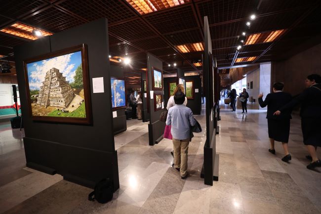 La diputada destacó que la muestra, conformada por 22 pinturas al óleo sobre tela con un marco entintado en color caoba, “está pensada para darnos y ayudarnos a adentrar en un viaje visual, en una cosmovisión única que solamente podemos sentir y que nos hace vibrar desde las raíces de nuestra madre tierra”.